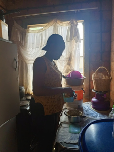 Nampumelelo et sa mère, en bleu derrière elle, m’ont invité à rendre visite à leur tante et à leurs proches…
